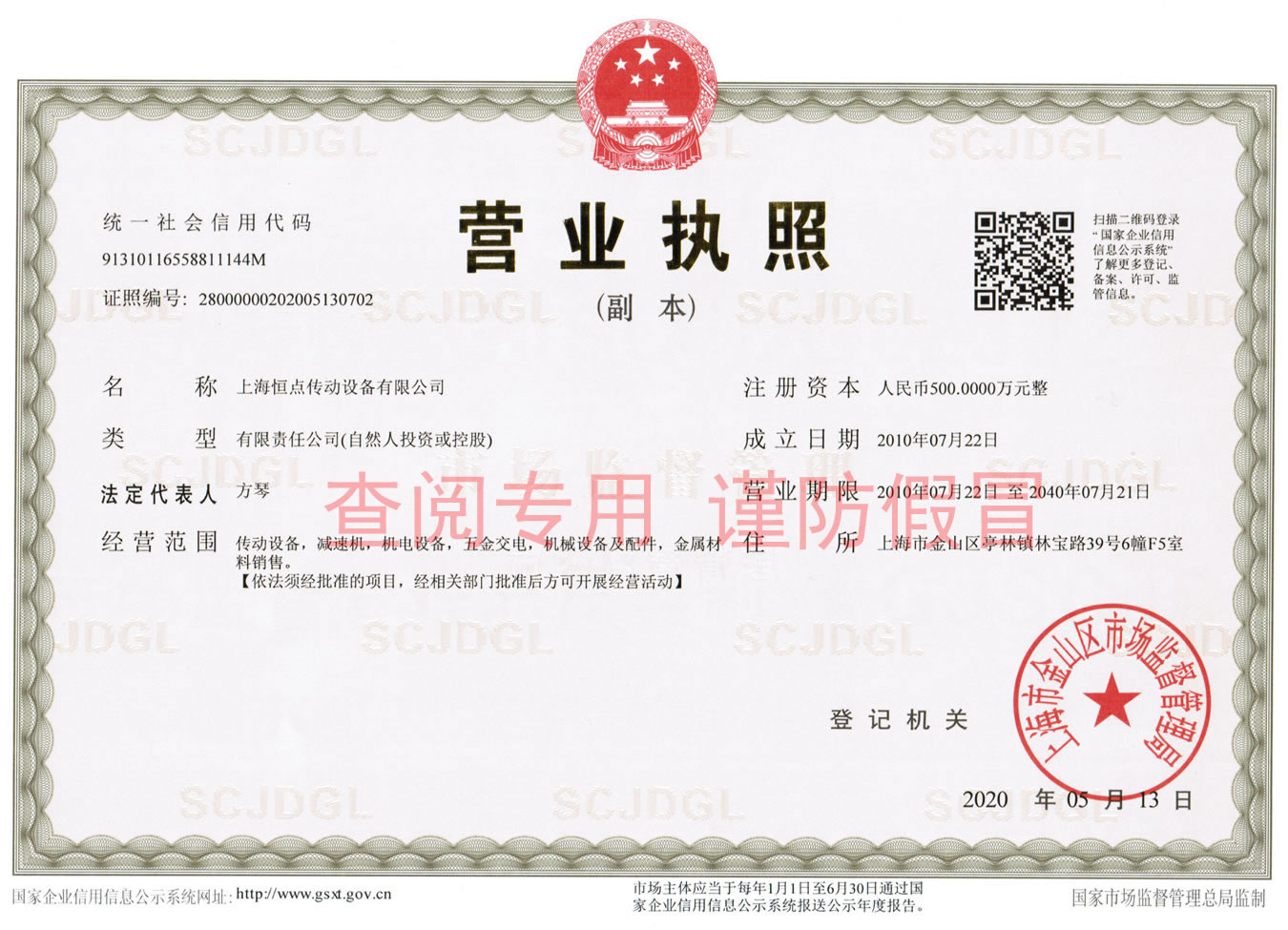 上海恒點減速機營業執照