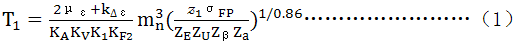 式(B1)與正文的公式(3)等效,其符号意義及取值同公式(3)。σHP應取大輪或小輪的小值代入式(B1)。對於人字齒輪 ,(2με+k△ε)按單側齒寬計,算得的T1值爲單側齒寬的名義轉矩。