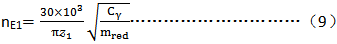 由於軸、軸承、箱體等的剛度及相應的阻尼未考慮,因此,臨界轉速可能高於或低於由式(9)計算的值。爲安全起見,臨界區域的界際爲: