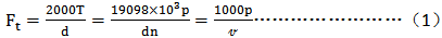 名義切向力Ft­作用於端面内分度圓上,它由工作機的輸入轉矩確定 ,該轉矩爲正常工作條件下的最大值。當原動機的名義轉矩與工作機的轉矩一緻時,可採用原動機的名義轉矩,或者選取其他合适的值 。