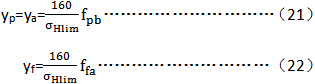 fpbeff、f­paeff——分别爲有效基圓齒距偏差和有效齒廓形狀偏差,μm;fpbeff和fpaeff爲跑合後的值,根據相應的跑合量yp和yf(μm)確定 :