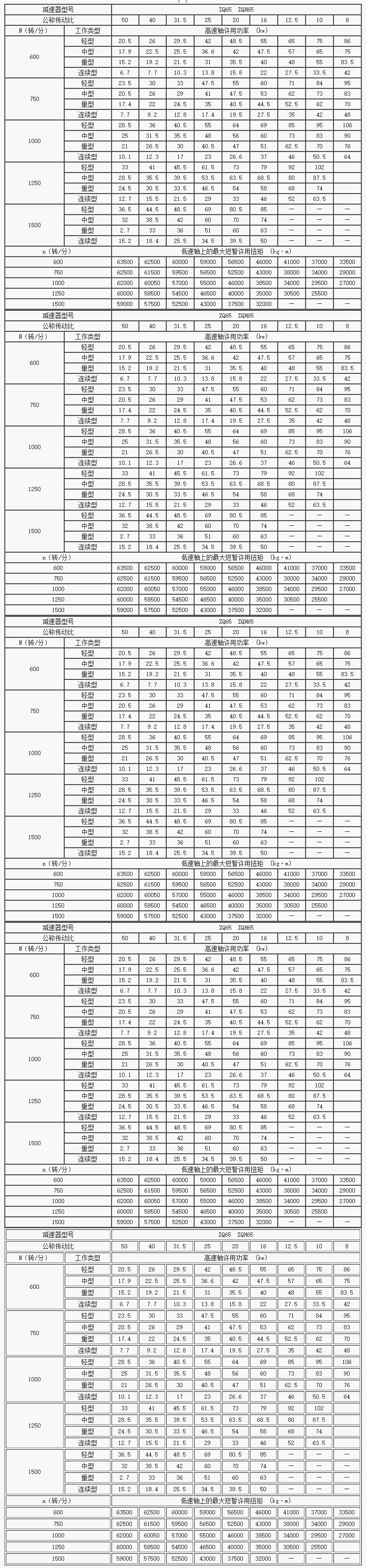 > ZQ、ZQH型圓柱齒輪減速器承載能力(JB1585-75)