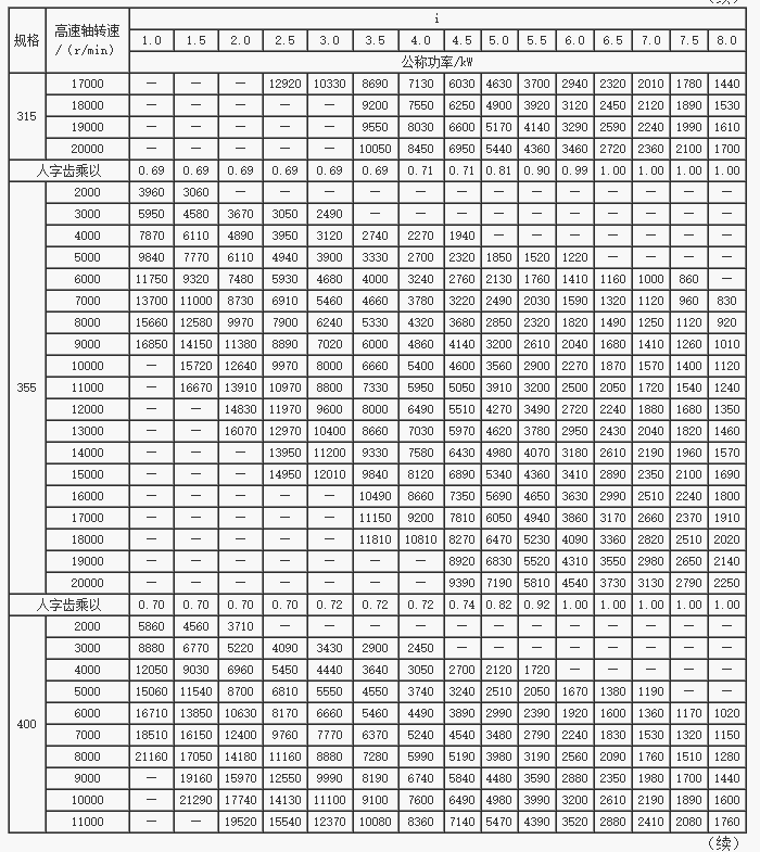 > GS系列高速漸開線圓柱齒輪箱公稱功率(二)(JB/T7514-94)