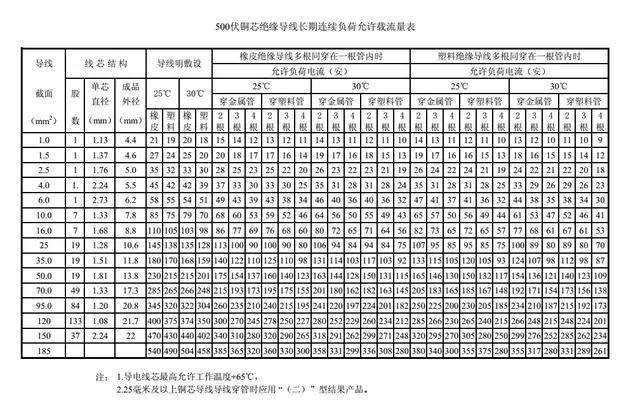 那麽實際工作中,我們電工也有自己的速算口訣的,那就是 :二點五下乘以九,往上減一順号走 。 三十五乘三點五,雙雙成組減點五。 條件有變(biàn)加折算,高溫九折銅升級。 穿管根數二三四,八七六折滿載流。意思是 :2.5平方的鋁芯線的載流量是它的額定截面積乘以9等於(yú)22.5A,如果是銅芯線就要升一級,就是2.5的鋁芯線相當於(yú)1.5平方的銅芯線。穿多根線時候要打折扣,就是後面所說的穿管根數二三四,打折後電線的是額定載流量的八七六折。