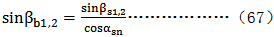 γ1,2=srctanγ1,2­=arc(sinαsn·tanβs1,2)………………………………(86)