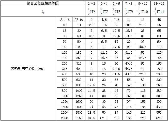 表1齒距累積公差FP及K個周節累積公差FPK值  μm