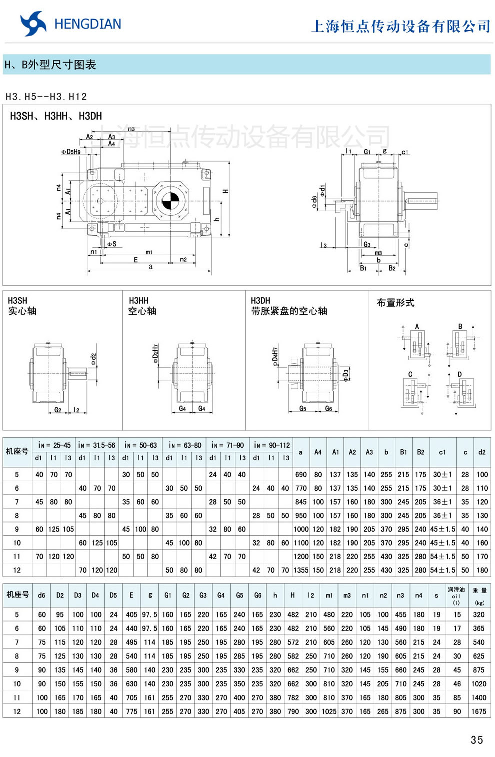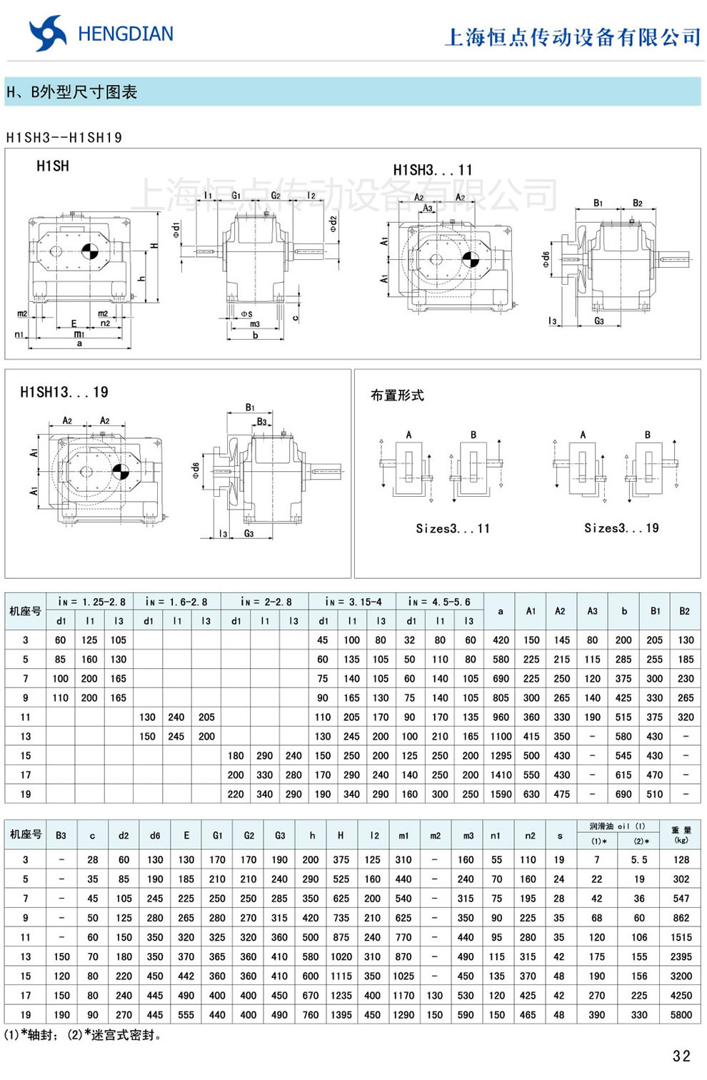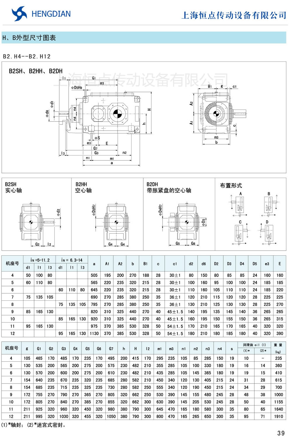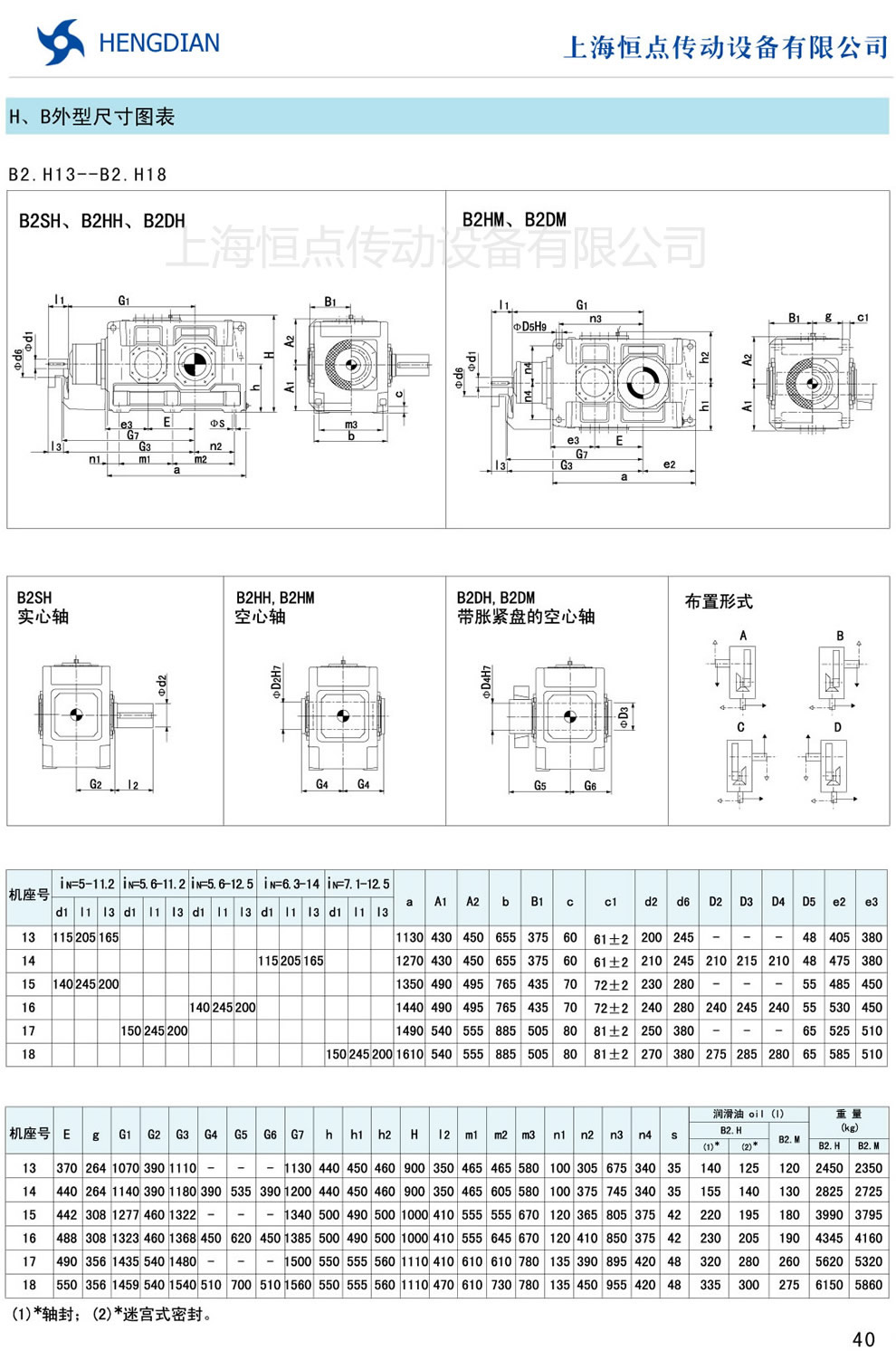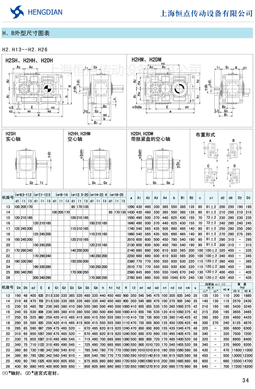 13 - HB系列外形尺寸(2) 14 - HB系列軸布置形式