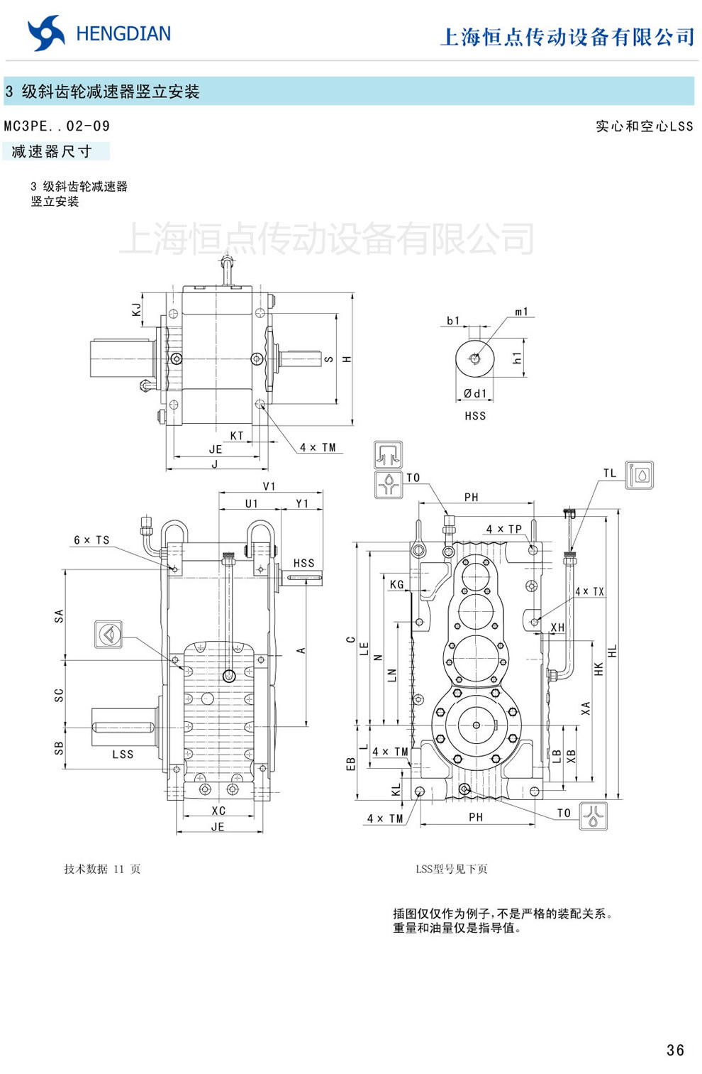 傳動能力和外型安裝尺寸/斜齒豎立安裝 - MC硬齒面減速器